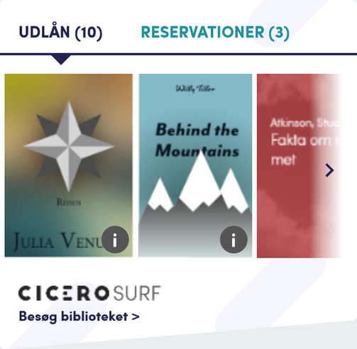 Desuden giver Cicero Udlån Widgten brugeren en direkte genvej til Cicero Surf, hvor brugeren bl.a. kan søge efter materialer og foretage reservationer.